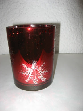 Windlicht Glas rot mit Flocke H 12.5 cm